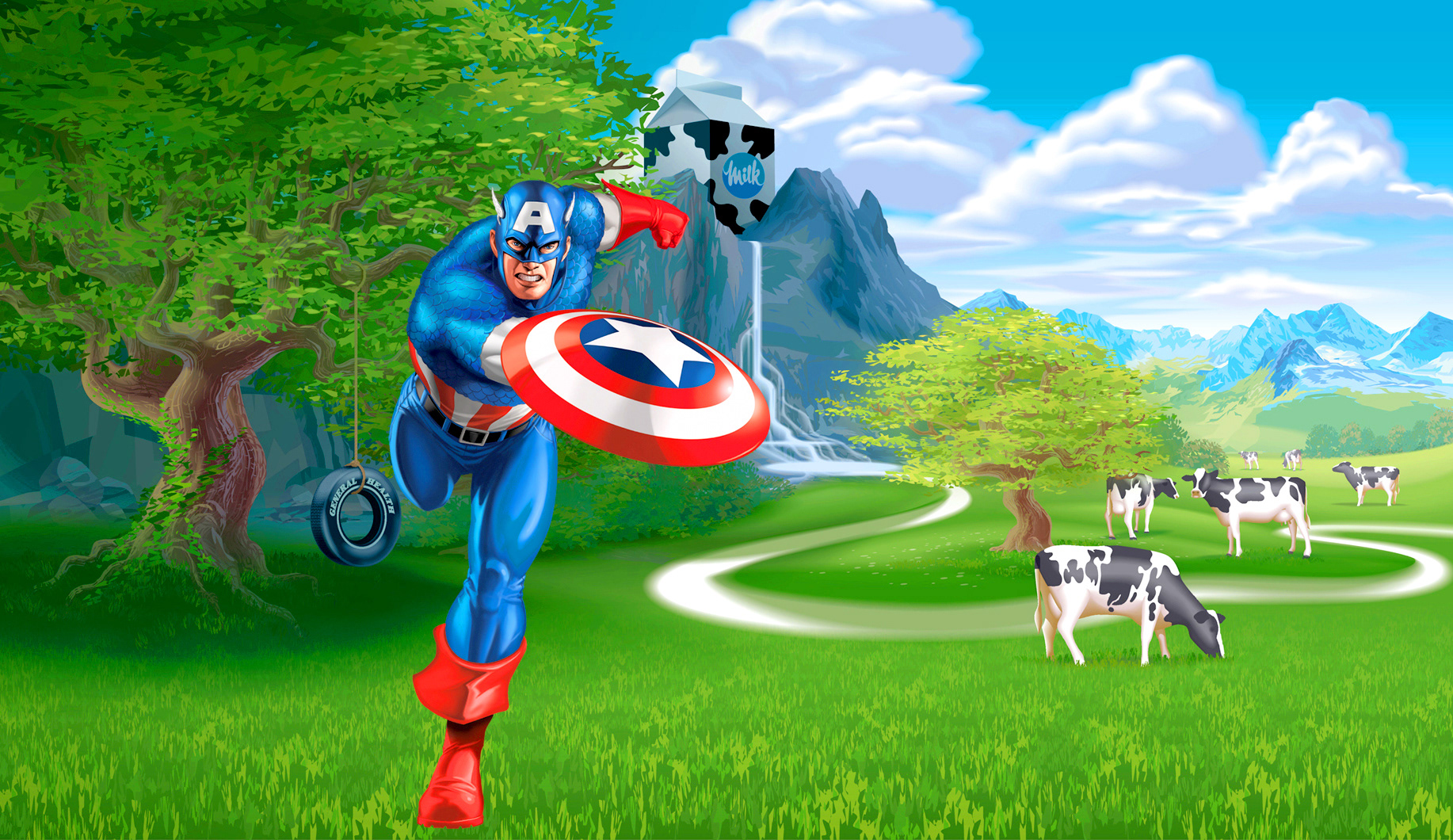 We worked with Twist Image to create the backgrounds for this cross promotion between Milk and Marvel.