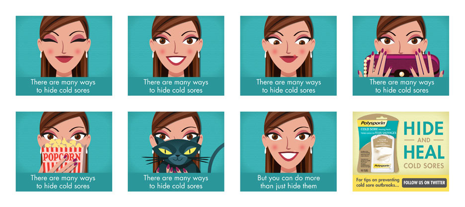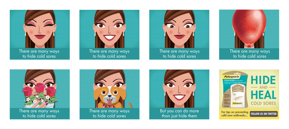 We worked with Tribal DDB on these banners and SM artwork for Polysporin cold sore tips.