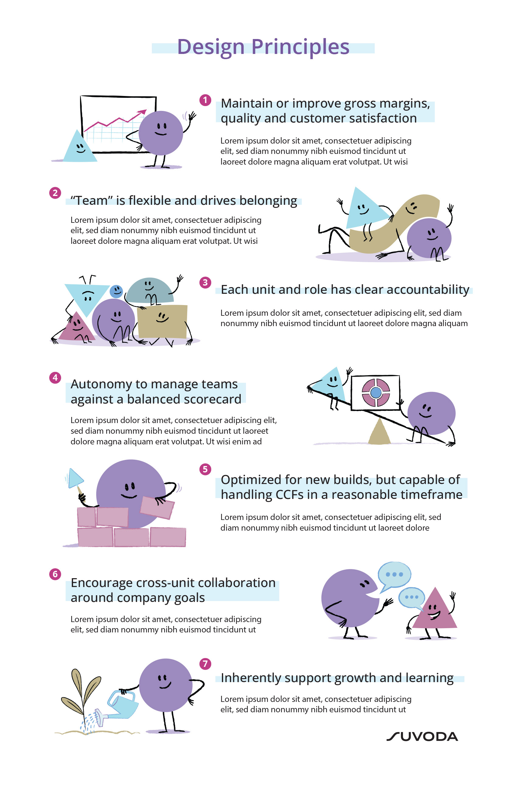 We worked with Drawbridge Innovations to design these Design Principles graphics for Suvoda.